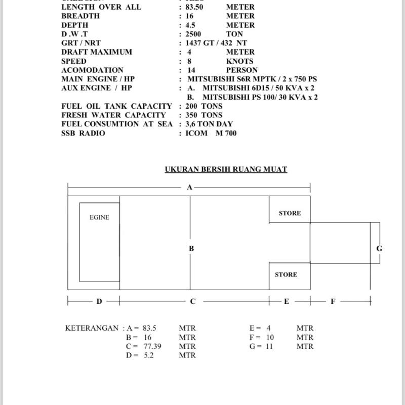 Length: 83m | DWT: 2500 | BHP: 1500 | Class: BKI |